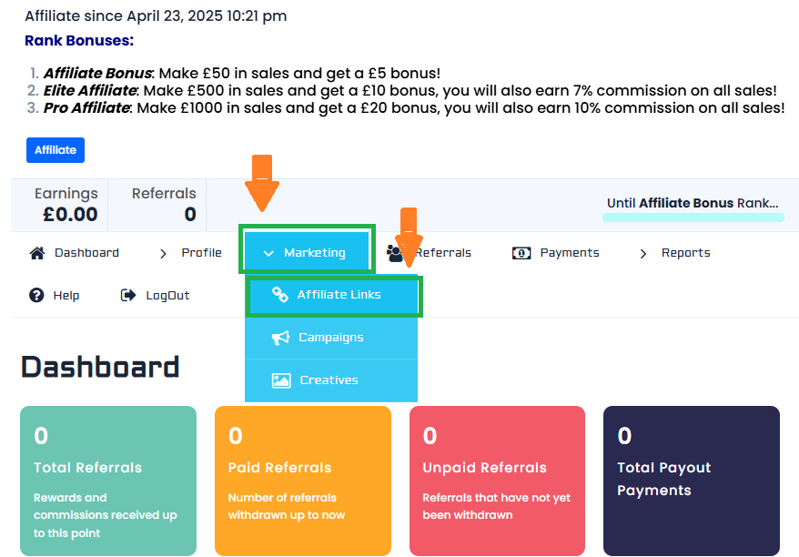 With campaigns set up, you can no see your analytics per campaign. Do this from your affiliate portal and going to: