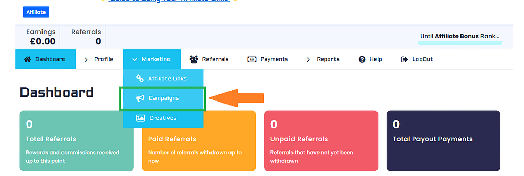 From your affiliate dashboard we want to go to: