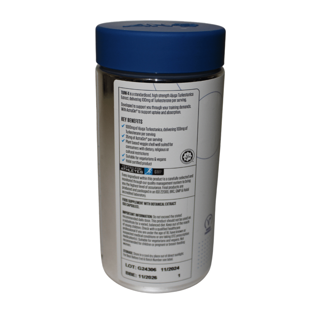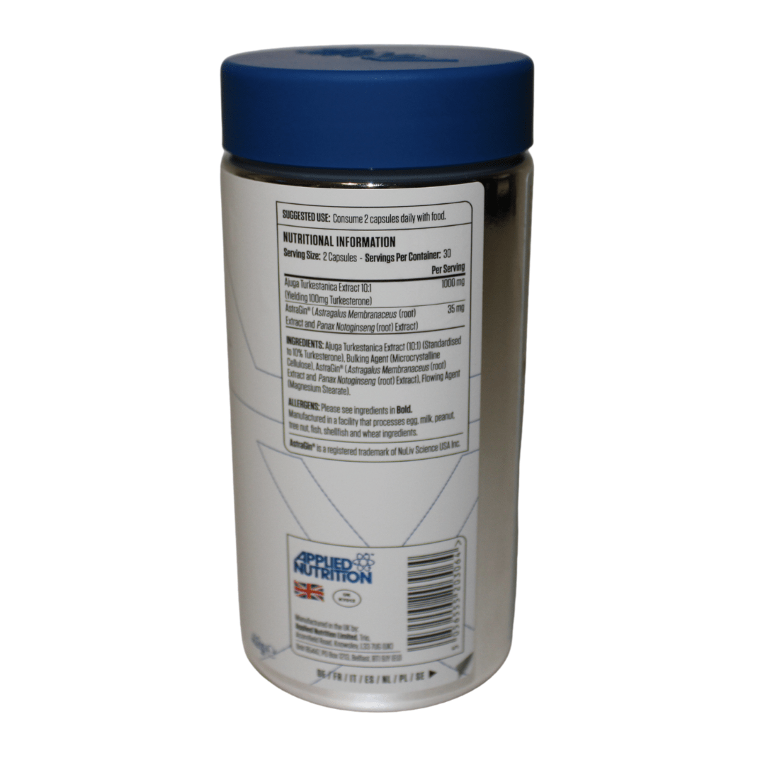Each serving provides 1000mg of Ajuga Turkestanica extract (10:1), yielding 100mg of Turkesterone, a naturally occurring ecdysteroid believed to promote muscle protein synthesis and lean muscle gains. To enhance nutrient absorption and bioavailability, 35mg of AstraGin® is included per serving, a patented blend of Astragalus Membranaceus and Panax Notoginseng root extracts, known for its ability to support nutrient uptake.
