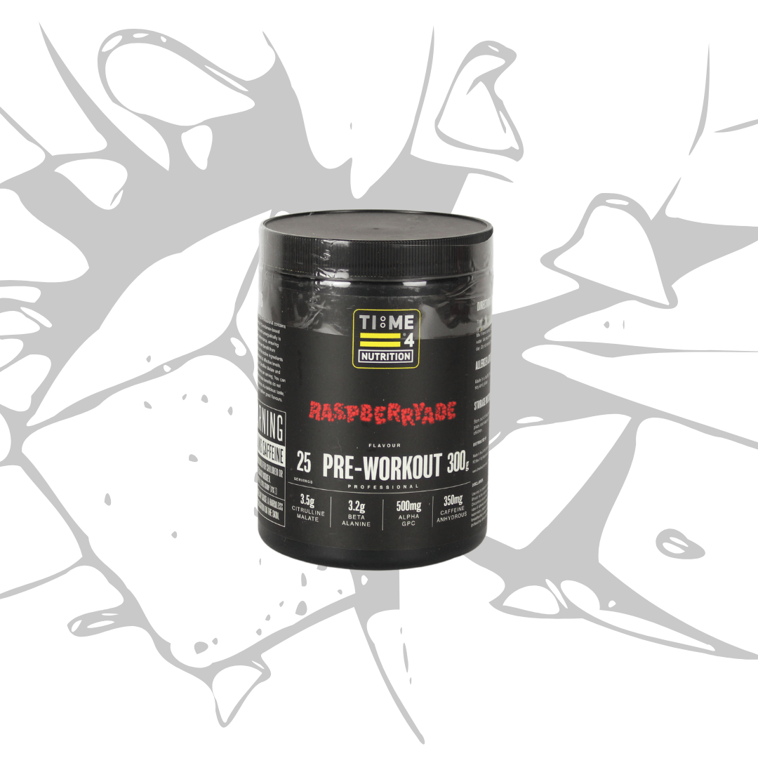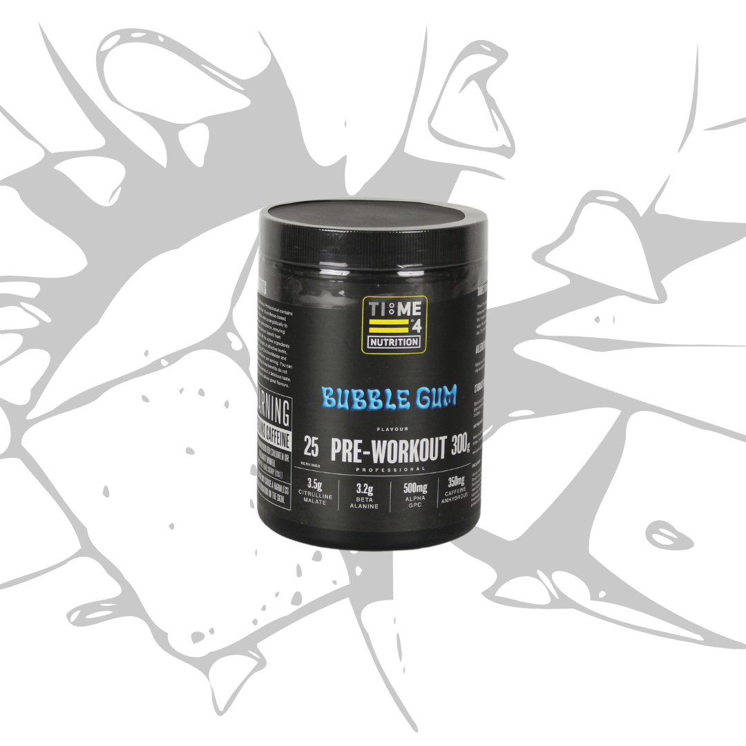 Time 4 Pre-Workout combines potent ingredients to deliver a powerful boost to your fitness regimen. Each serving is packed with 300mg of caffeine, Beta-Alanine, and Creatine Monohydrate to enhance your energy, endurance, and strength. Available in four delicious flavours—Tropical, Bubble Gum, Candy Floss, and Raspberry Grenade—this pre-workout is designed to help you achieve peak performance and support your training goals. Mix one scoop with water, drink before your workout, and experience the difference!