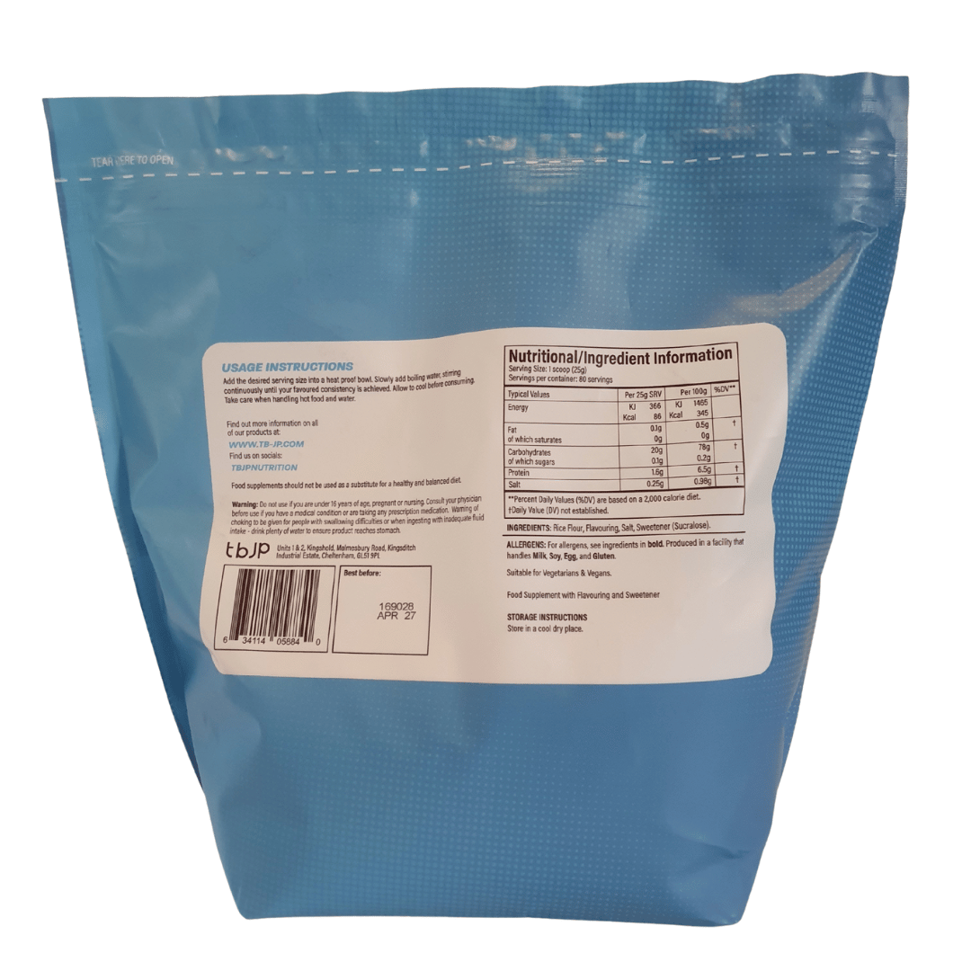 Trained By JP Cream of Rice is a smooth, easy-to-prepare carbohydrate source made from rice flour. Low in fat and sugar, suitable for vegans, and ideal as a breakfast or pre-workout meal. 80 servings per pack.