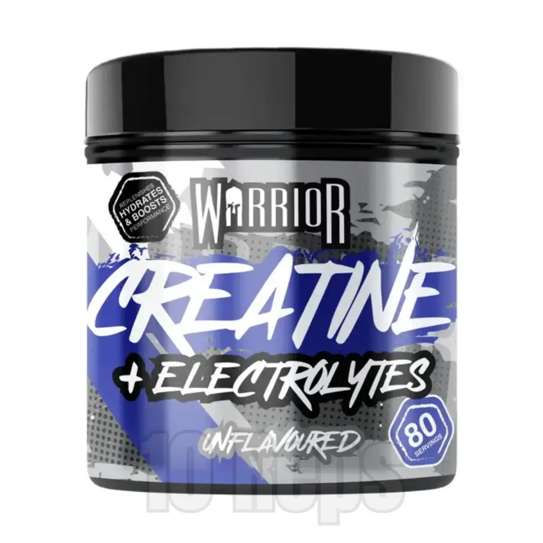 Warrior Creatine + Electrolytes is a premium workout supplement combining 3.7g of micronised creatine monohydrate with an advanced electrolyte blend, designed to support strength, hydration, and recovery. Each 4.5g serving delivers essential minerals, including sodium, potassium, calcium, and magnesium, to help replenish electrolytes lost through sweat and maintain fluid balance during training.