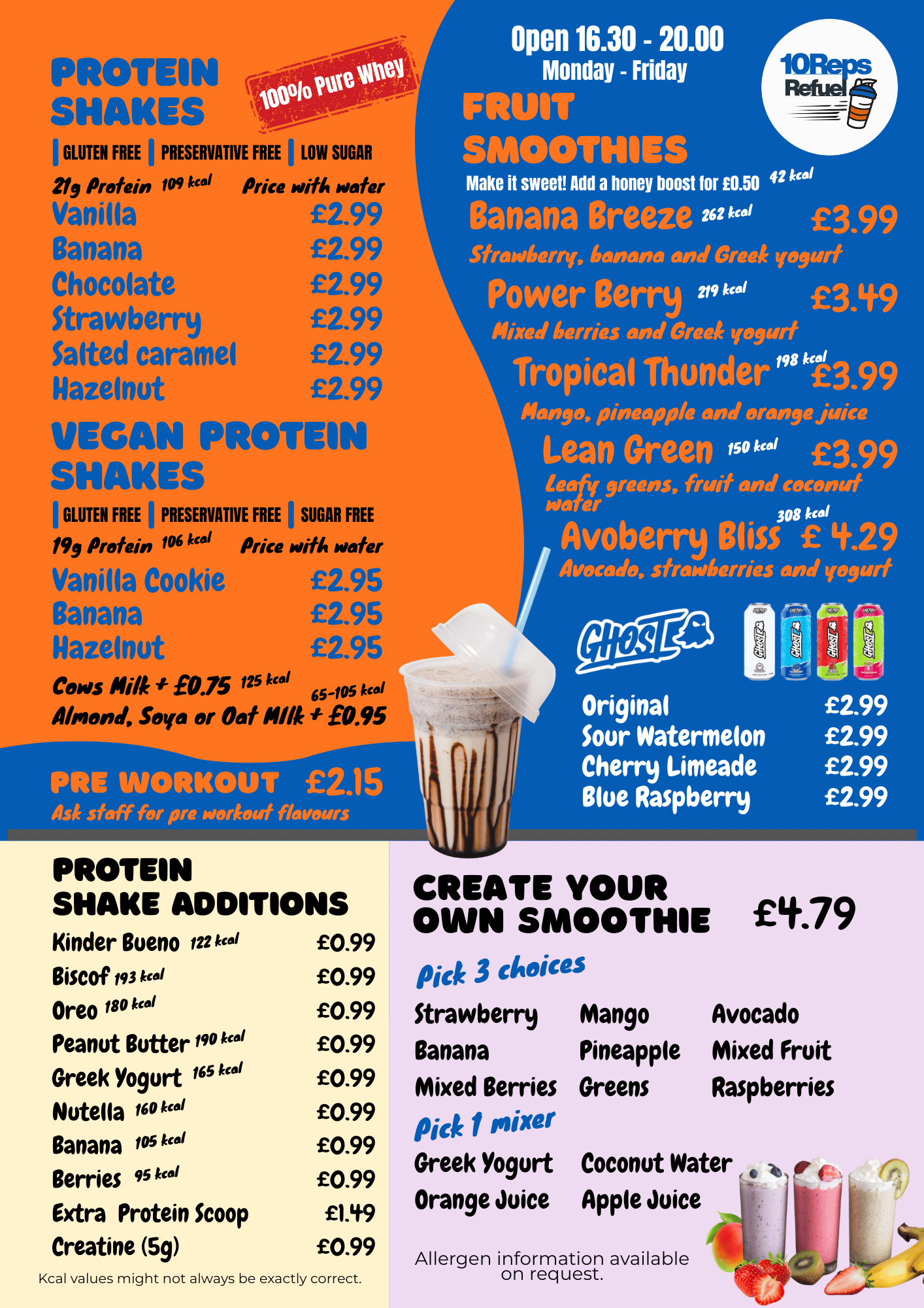 Not a member of Snap Fitness in Fareham? You can still head in to order a protein shake, smoothie or ice cold GHOST energy drink. Press the bell by the front door and ask the reception staff to point you towards the 10 Reps Refuel Bar.
