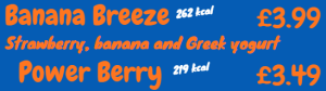 We also have a create your own choice. Here you can pick 3 choices of fruit/veg, a mixer like yogurt, juice, coconut water and other mixing liquids.